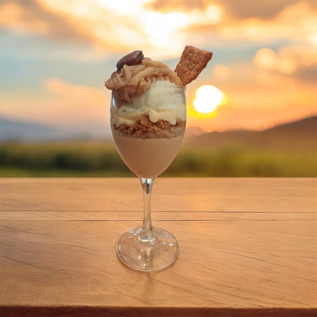 さらにスフレの中には、ひんやり濃厚なハーゲンダッツ バニラジェラートを忍ばせて。熱々のスフレと冷たいバニラがとけ合い、和栗のクリームと重なりながら、口いっぱいに幸せが広がっていきます。